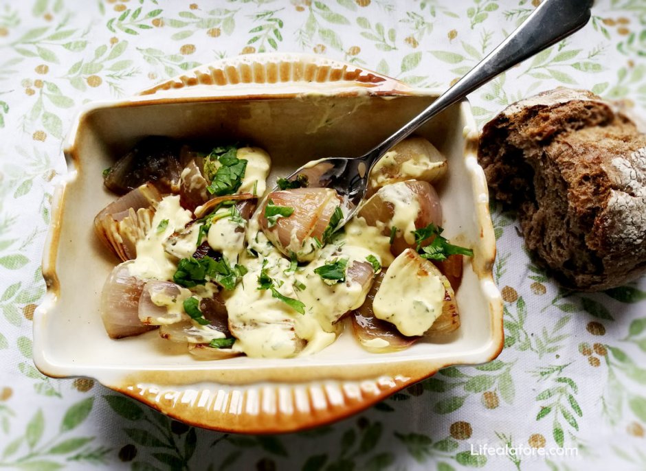 Лук с пряностями — хороший гарнир к телятине, индейке или кролику. Это самое простое блюдо, которое только можно придумать. В нем лишь один ингредиент.  У любой хозяйки десяток луковичек всегда найдется. Этот рецепт — французский. Почему-то кажется, что если французский, то обязательно из дорогих и редких продуктов.  Я думаю по-другому. Французский — значит с изюминкой.