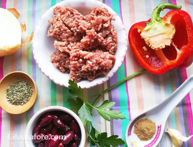 Само название полностью отражает состав — мясо и перец чили. Правда, есть еще и бобы, которых в названии нет.