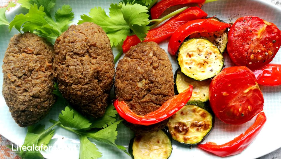 - Гречаники и овощи поместить в духовку. Через 15 минут гречаники вынуть. В режиме гриля допечь овощи до готовности.