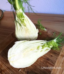 Фенхель — не самый распространенный овощ в наших краях, хотя не знаю, почему так. С июня по сентябрь длится сезон фенхеля и все полезное, что в клубнях есть, сейчас на максимуме. Насчет полезного: например, витамина С в фенхеле в 2 раза больше, чем в лимонах или апельсинах. Есть еще витамины группы В, витамин Е, калий, магний и железо.
