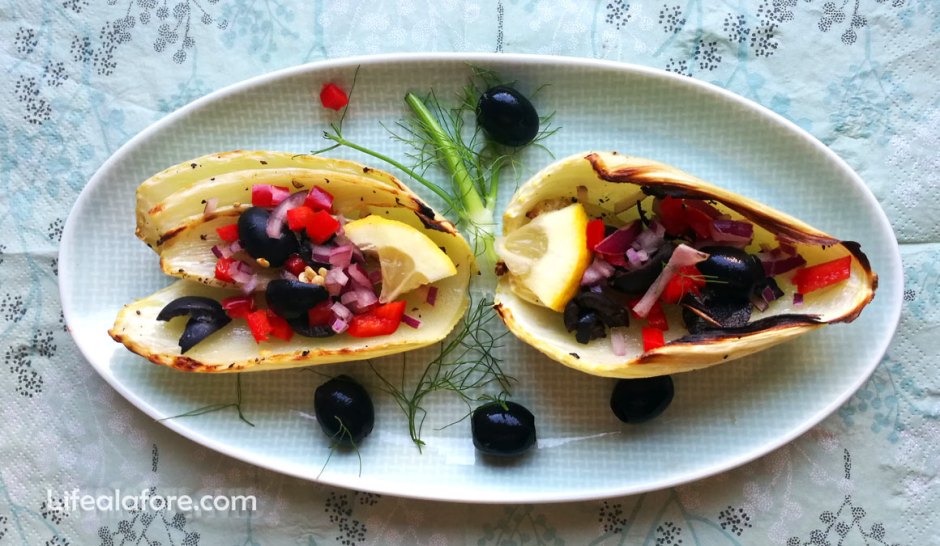 - Нарезанные листья фенхеля поставить в сильно разогретую духовку приблизительно на 15 минут. Листья нужно один раз повернуть, следить, чтобы не подгорели. Фенхель можно приготовить и на гриле.