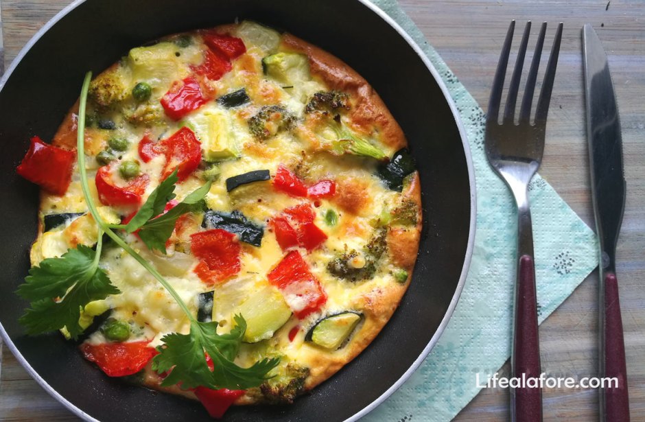 Фриттата — это аппетитный итальянский омлет, в состав которого входят сыр и овощи. При желании в него можно добавить шпинат, кусочки мяса, колбасы и даже макароны. В общем, вариант «крестьянского завтрака», сытного и приготовленного из всего, что было под рукой. Я пеку этот омлет в духовке: меньше жира и больше свободного времени.