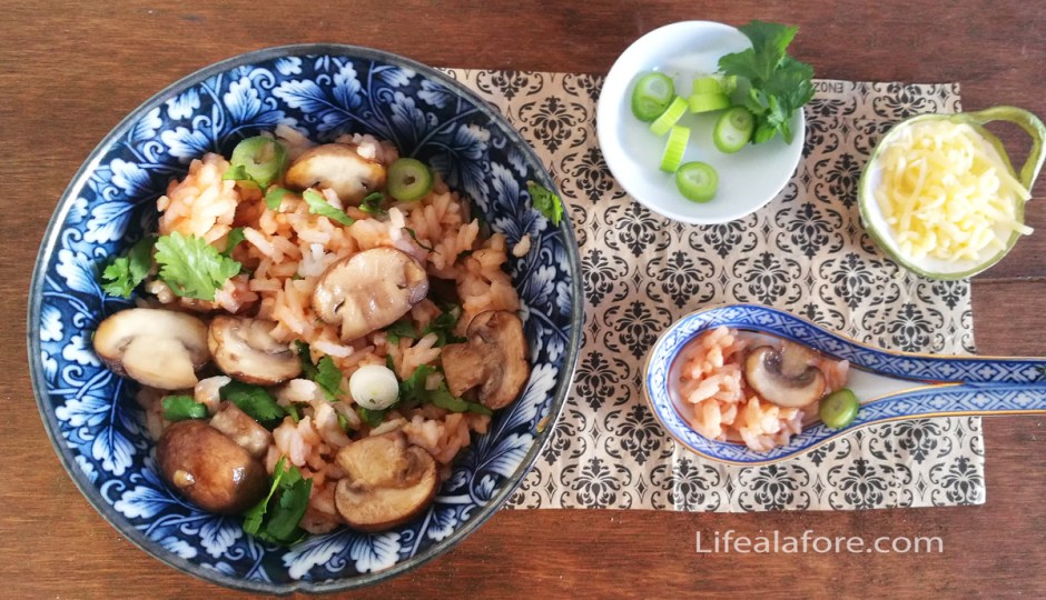 Мне показалось, что сочетание продуктов в рецепте довольно интересное и я решила этот розовый рис приготовить. Тем более, что в холодильнике нашлось все необходимое.