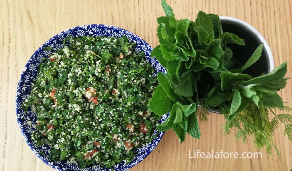 - Вот так выглядит этот ярко-зеленый весенний табуле среди других вегетарианских деликатесов.