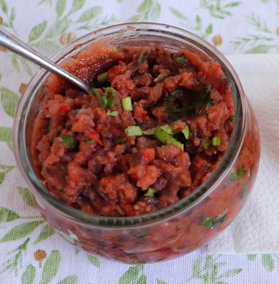 - Икру переложить в миску, посолить, добавить нарезанную зелень кинзы, перемешать и полить очень хорошим подсолнечным маслом.