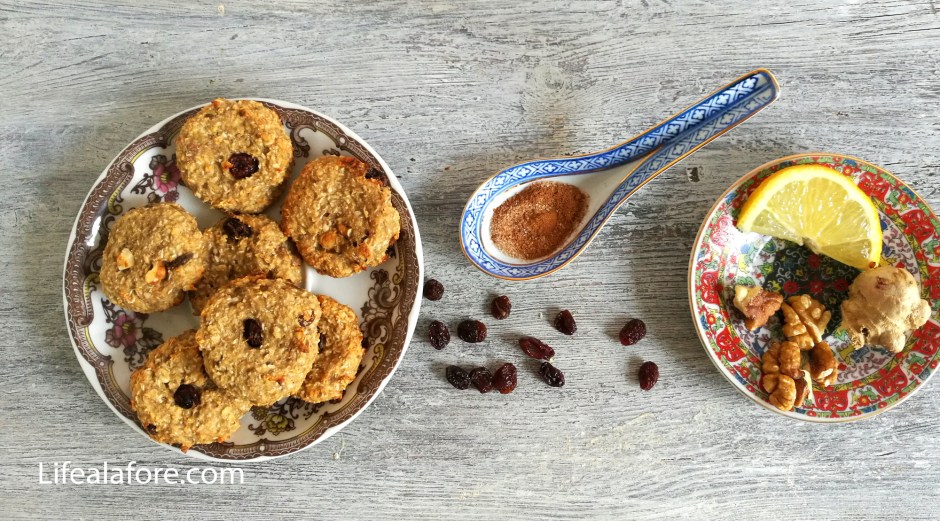 Основа печенья — это всего два ингредиента: овсяные хлопья и банан. В принципе, можно их просто смешать и испечь. Если банан очень спелый, печенье получается достаточно сладким, но вкус, мне кажется, не слишком интересный. Поэтому в такие коржики просятся разные добавки: изюм, орехи, какао. Я решила сделать овсяно-банановое печенье с восточной нотой.