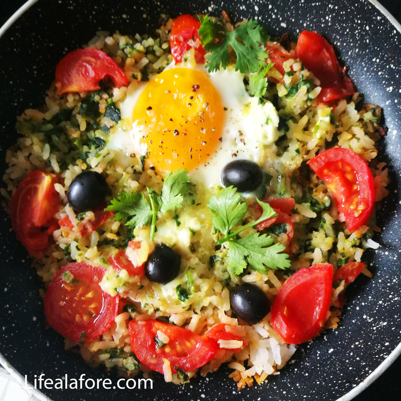 Шакшука — это яичница, которая готовится с томатами и томатной пастой. Но мы, как всегда, дополним это вкусное летнее блюдо полезными ингредиентами: натуральным рисом, шпинатом, маслинами. Готовить его просто, а если у вас осталось немного готового риса и есть замороженный шпинат, то шакшуку можно будет сделать за 30 минут.