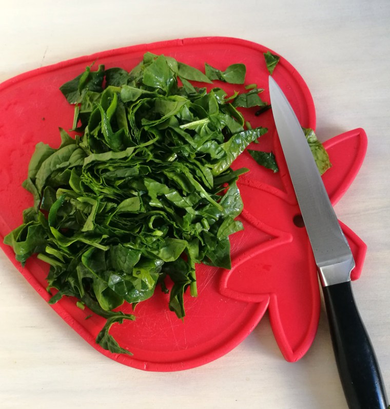 Листья шпината нарезать полосками и опустить в кипящий борщ. Проварить 1 минуту и выключить плиту. Зеленый лук нарезать колечками, чеснок натереть. В кастрюлю положить лук, чеснок и сливочное масло. Попробовать, если нужно, досолить. Накрыть кастрюлю крышкой и дать борщу настояться несколько минут.