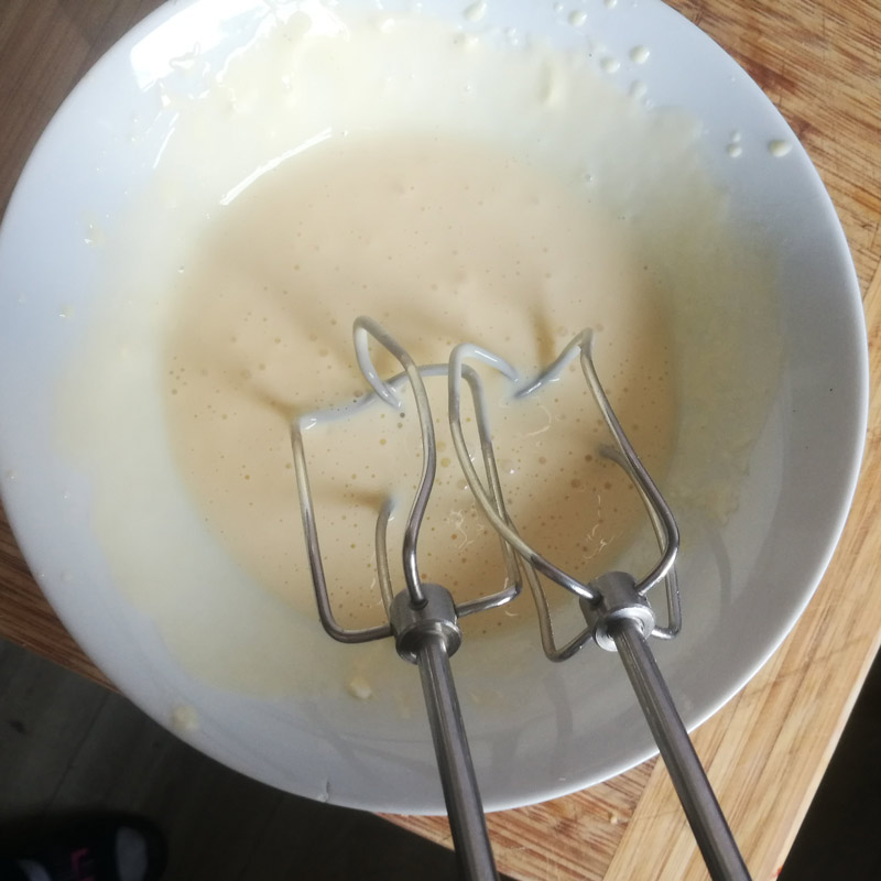 В миске миксером взбить яйцо с творогом и минеральной водой. Посолить, добавить тмин.