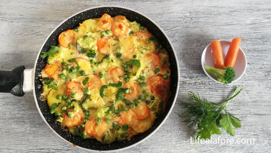 Вкусная, полезная и очень аппетитная из самых обычных овощей. Кстати, если у вас осталось со вчера немного грибов или, например, цветной капусты, их вполне можно использовать в этой запеканке.