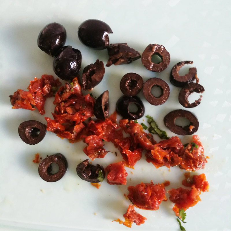 - 3 ломтика сушеных томатов в масле