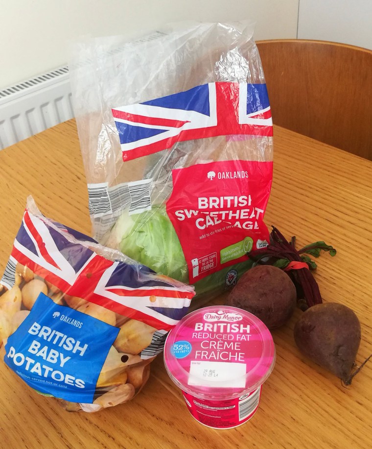 Я начала свой визит в Лондоне с того, что решила сварить борщ. А заодно посмотреть, что продается в супермаркетах, куда я в прошлые короткие поездки ни разу не заходила. Думала, увижу что-то особенное, английское. Но ошиблась. Ничего национального, разве только вкусный оранжевый сыр Red Leicester. Зато оказалось, что национальный дух ярко выражен в упаковках. Это овощи, которые я купила на борщ, все в кульках с английским флагом и надписью BRITISH.