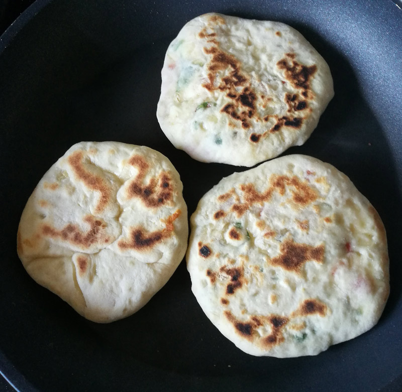 Эти лепешки — что-то среднее между грузинскими хачапури и индийскими лепешками из бездрожжевого теста.